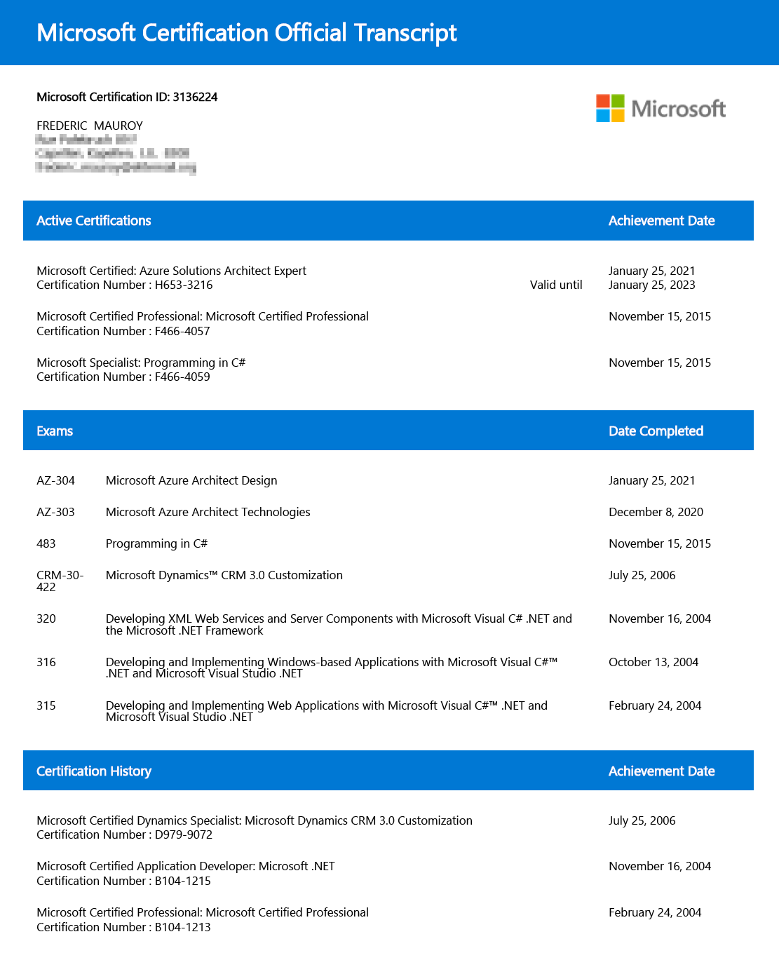 Consulting on .Net and cloud solutions at a Big5 company, then CFL.